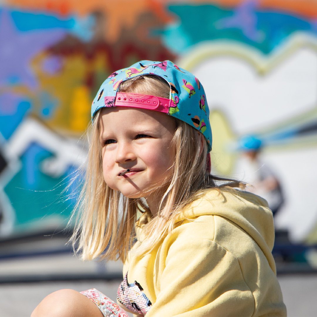 Für unsere Kinder Snapback Caps verwenden wir u.a. recyceltes Polyester und können ggü. konventionellem Polyester deutlich an Energie und Ressourcen sparen. Basis: Snapback Cap - 90s - Children.